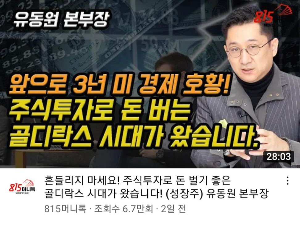흔들리지 마세요! 주식투자로 돈 벌기 좋은 골디락스 시대가 왔습니다! (성장주) 유동원 본부장