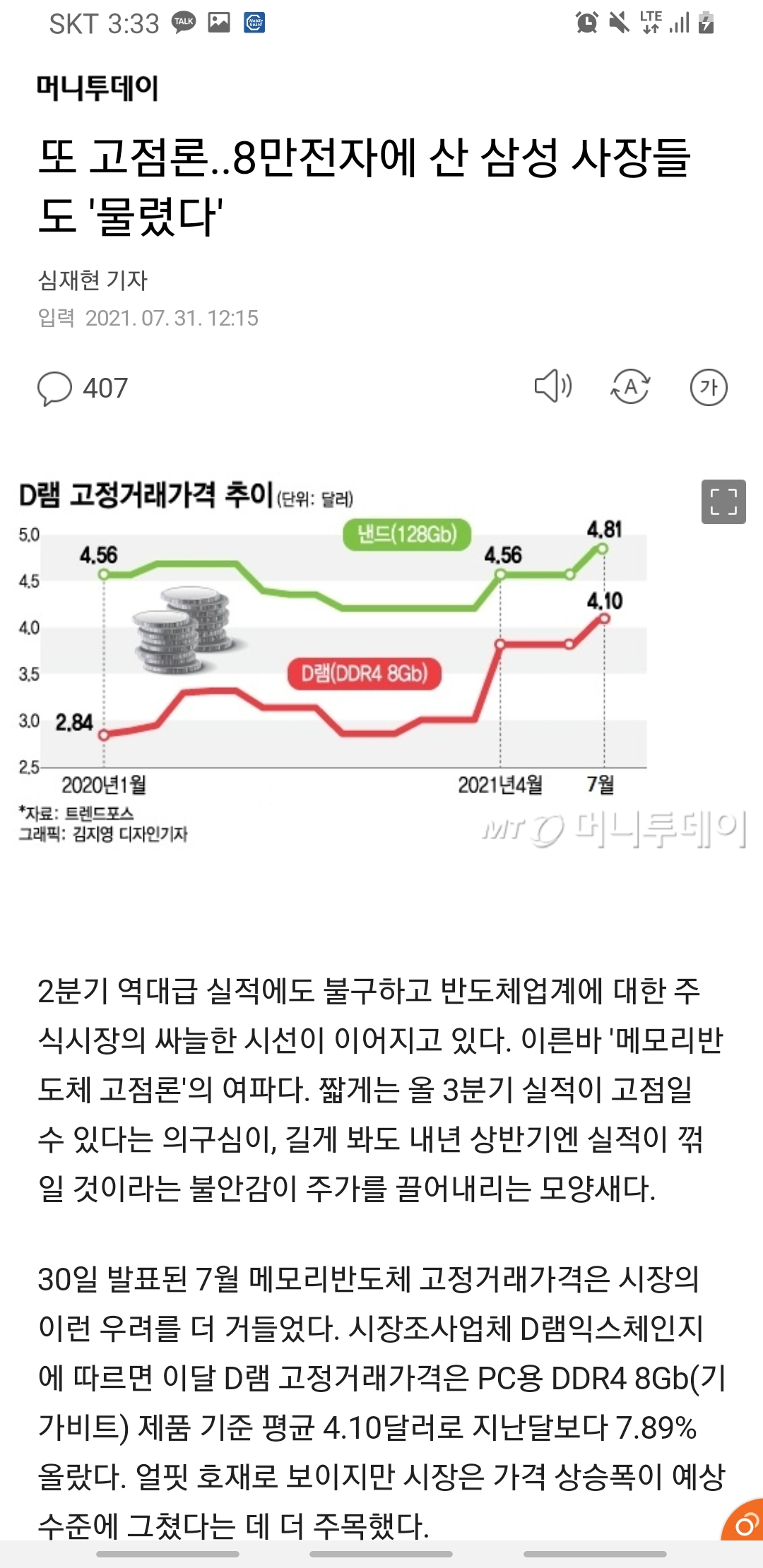 또 고점론…8만전자에 산 삼성 사장들도 '물렸다' : 네이버 뉴스 (naver.com)