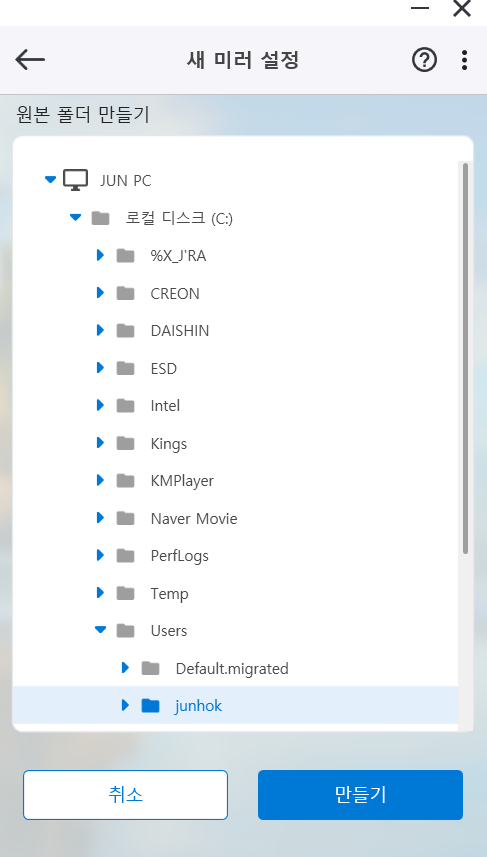 특정한 폴더를 설정하면 실시간으로 백업이 되는 기능입니다.