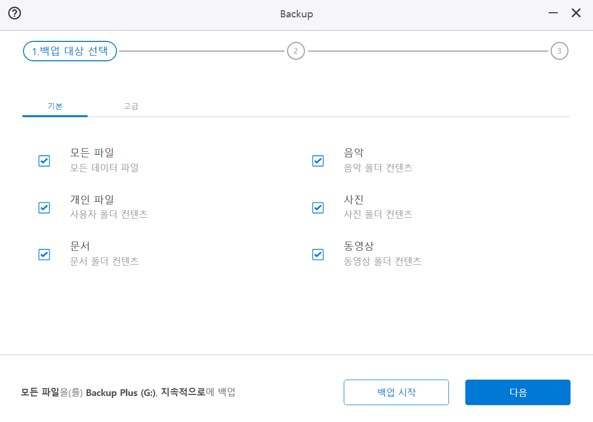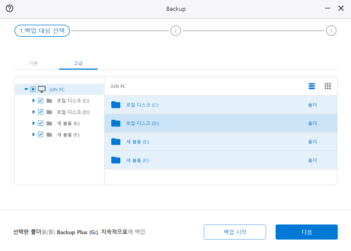 고급설정에서는 특정한 폴더들을 백업 설정할 수 있습니다.