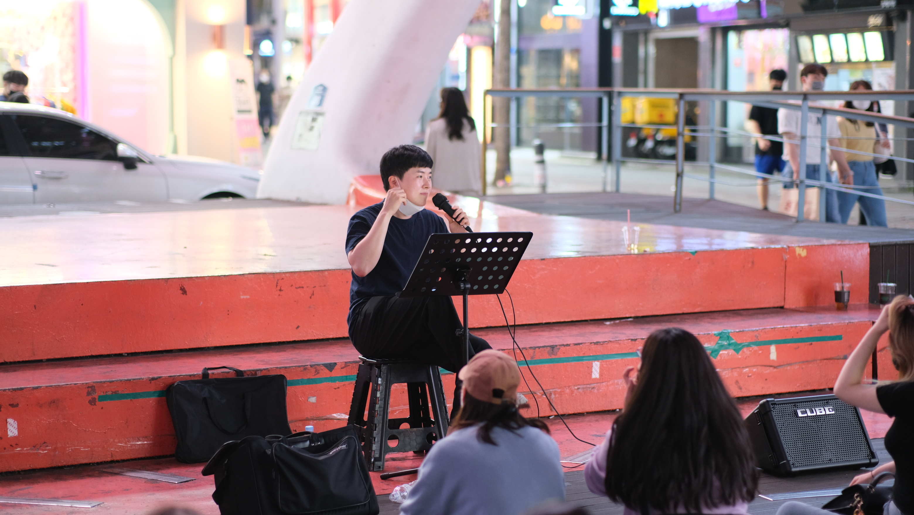대신에 버스킹하시는 분의 인물 사진은 아니고 공연 사진을 올려봅니다.