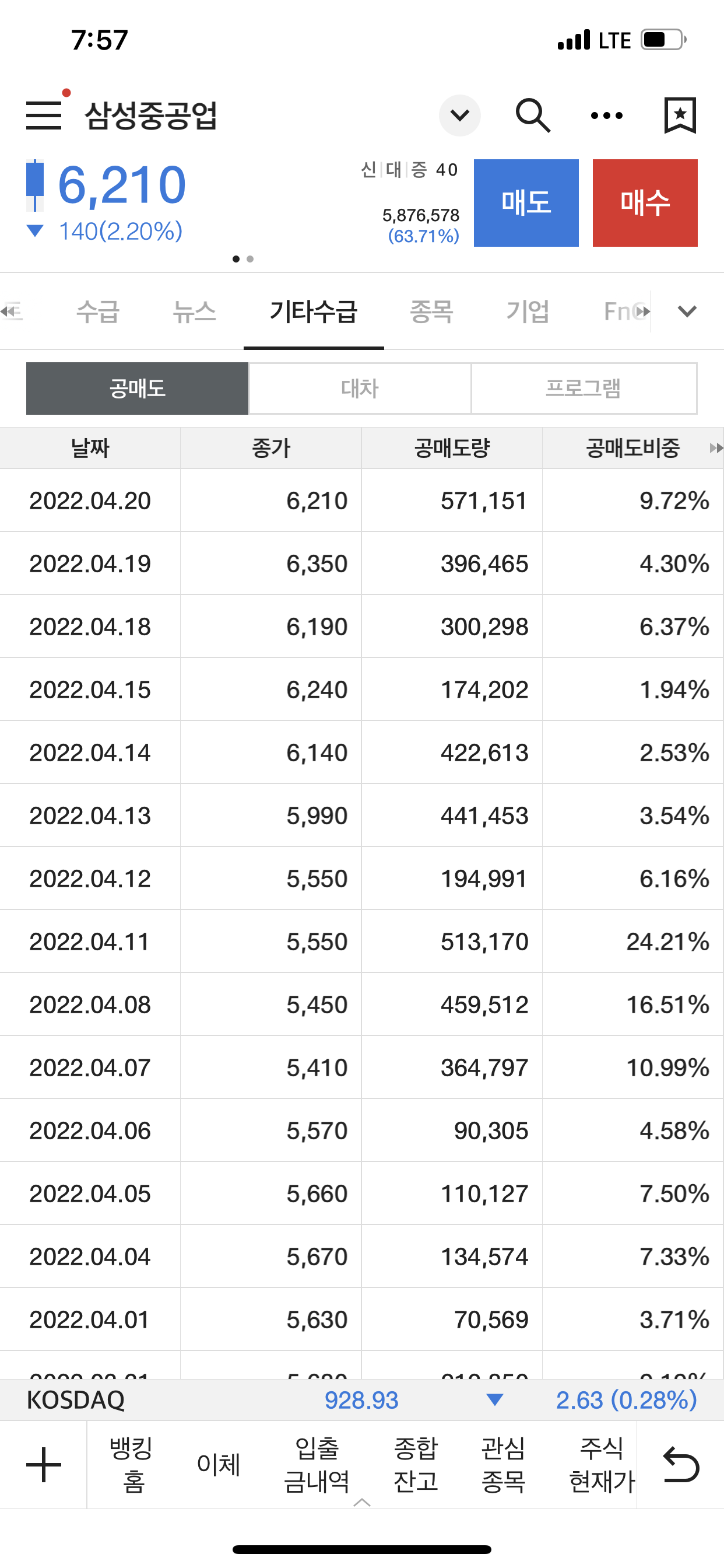 차트는 지지되고 있지만, 공매도 비중이 늘어나고 있어서 조금 신경이 쓰입니다.