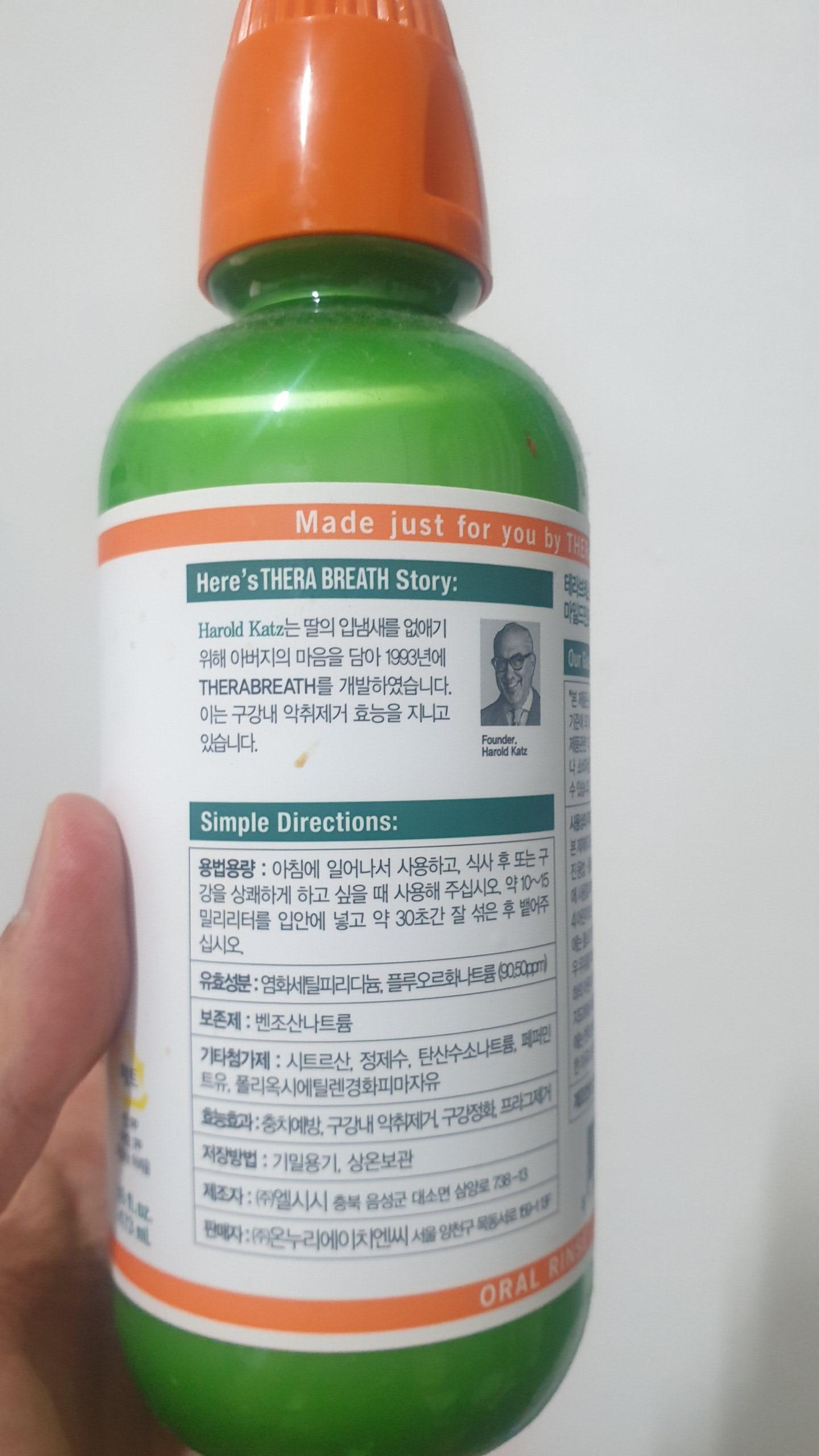 그런데 이 구강청결제는 알콜 성분이 없어서 구취제거에도 좋고,