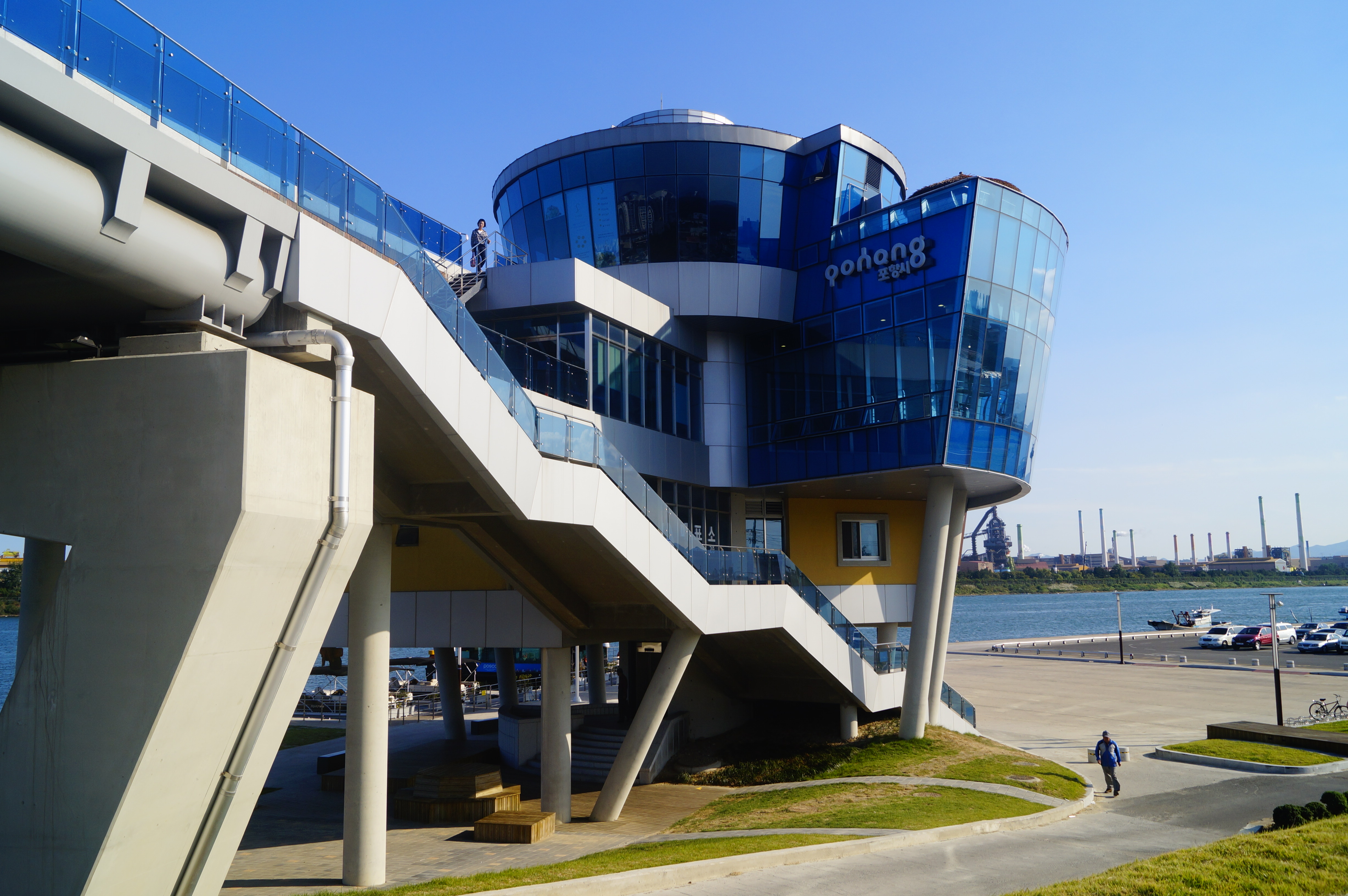 포항 가볼만한 곳 스페이스 워크 요새 포항에서 가장 핫플인 스페이스 워크입니다. 독특한 구조물인데요. 구조물에 계단이 적용된 건데요. 그래서 사람이 직접 올라가볼 수 있어요. 운영시간은
