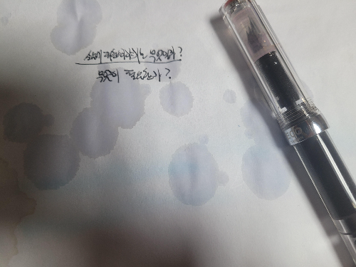 그런데 일반적인 만년필 잉크가 수성이다 보니 물이 묻으면 번져버립니다.