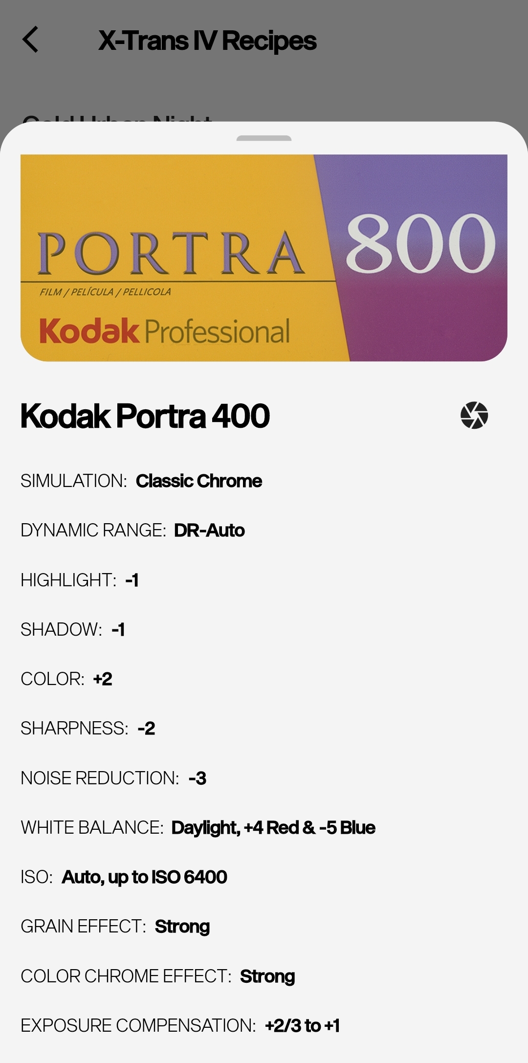 우선 테스트해볼 필름레시피는 코닥 포트라 400입니다.