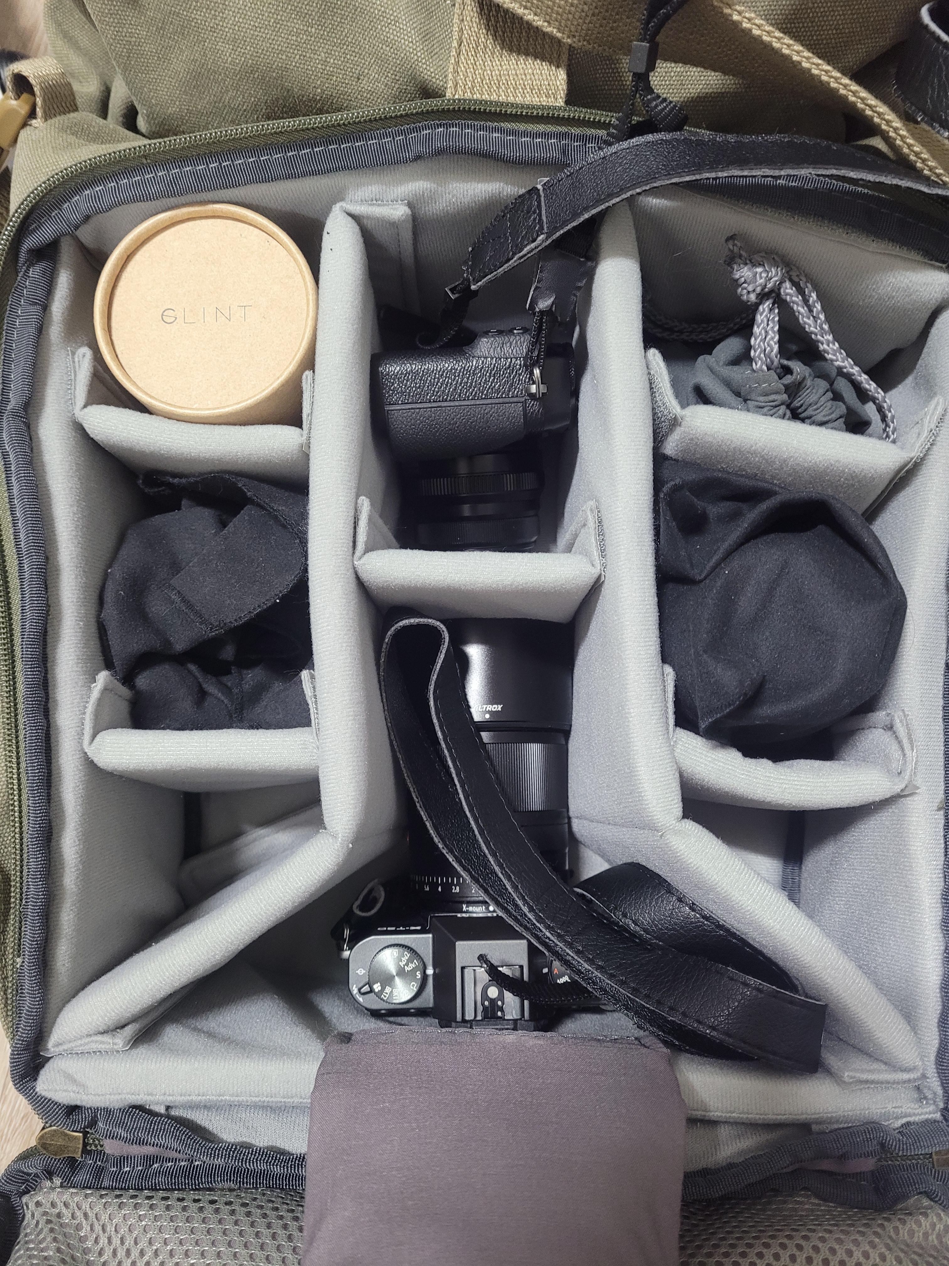 카메라 2대와 렌즈는 총 3개까지 수납이 가능해서 언제 어디서든 사진을 편하게 찍을 수 있더라구요.