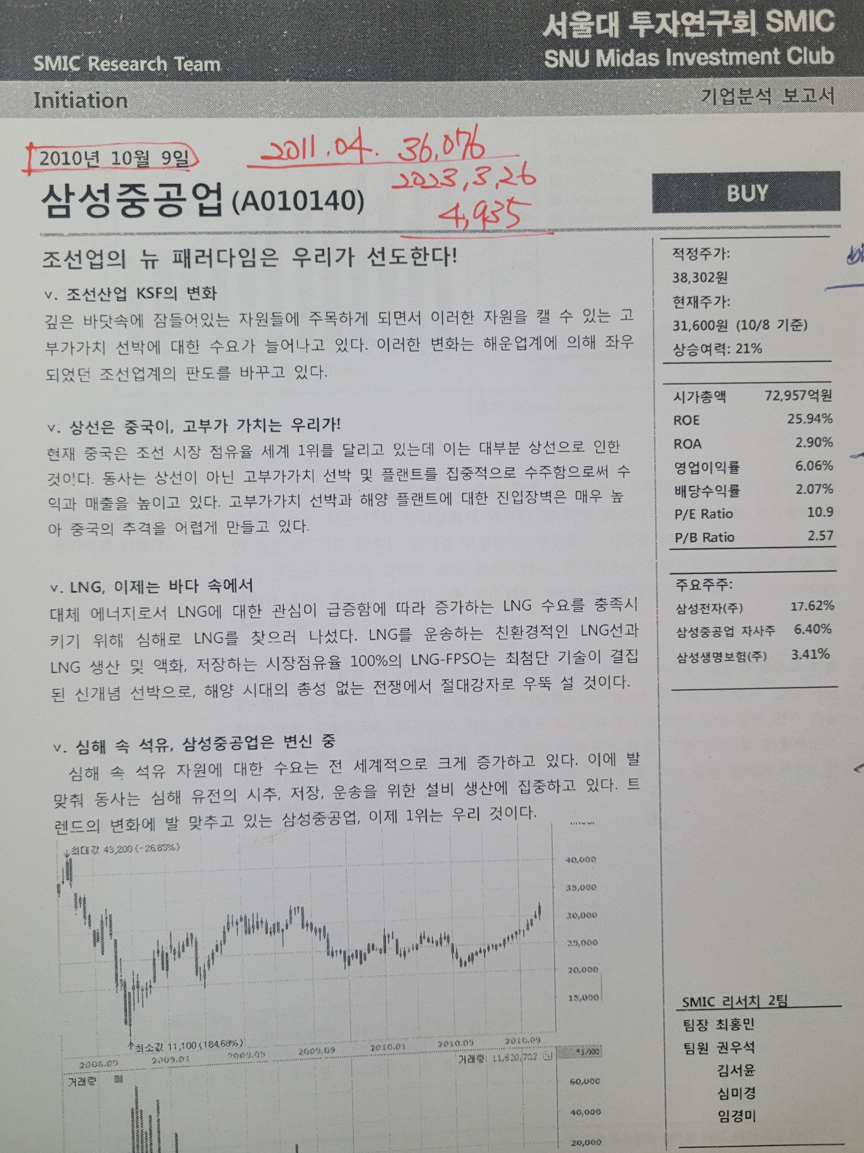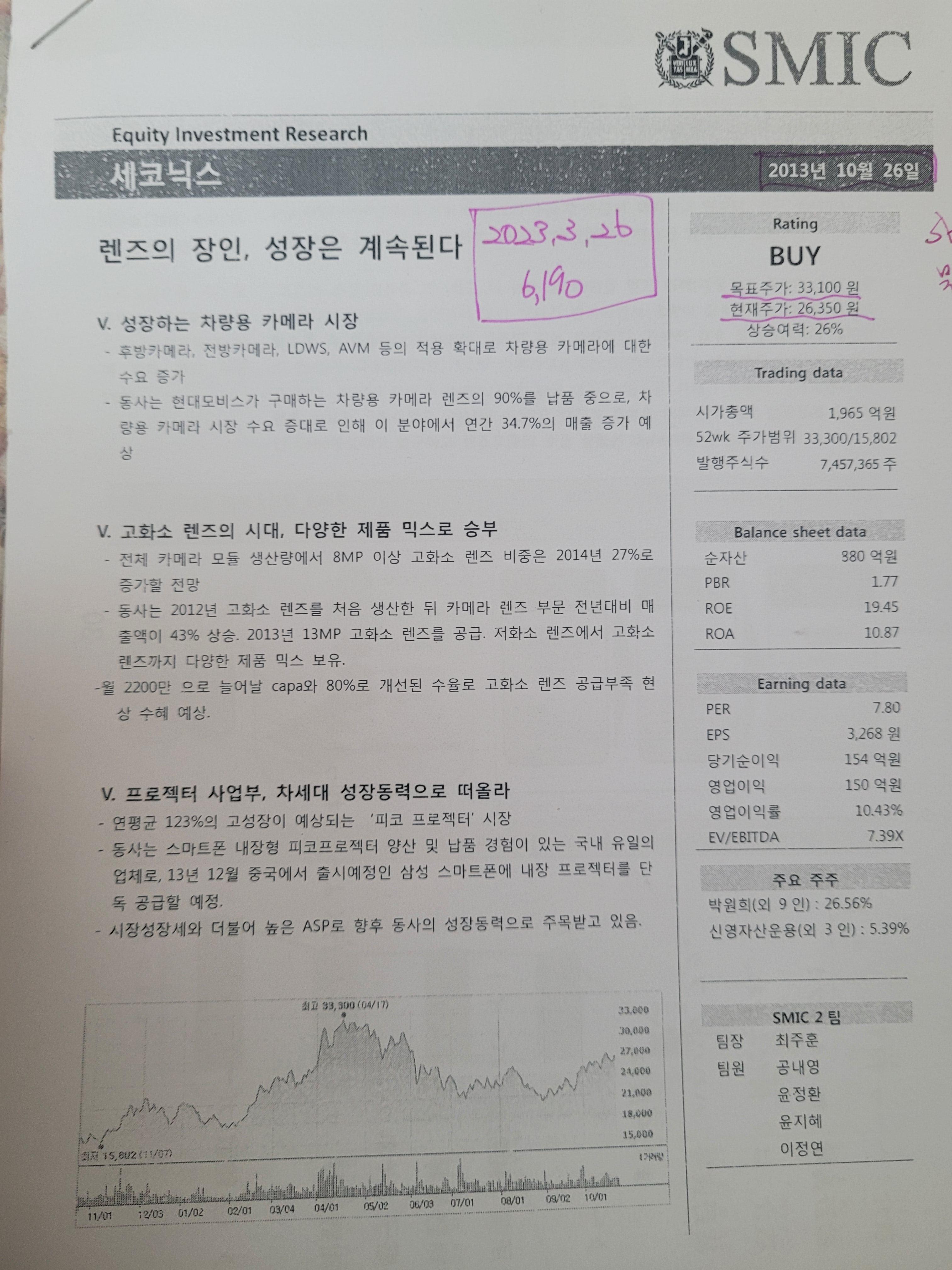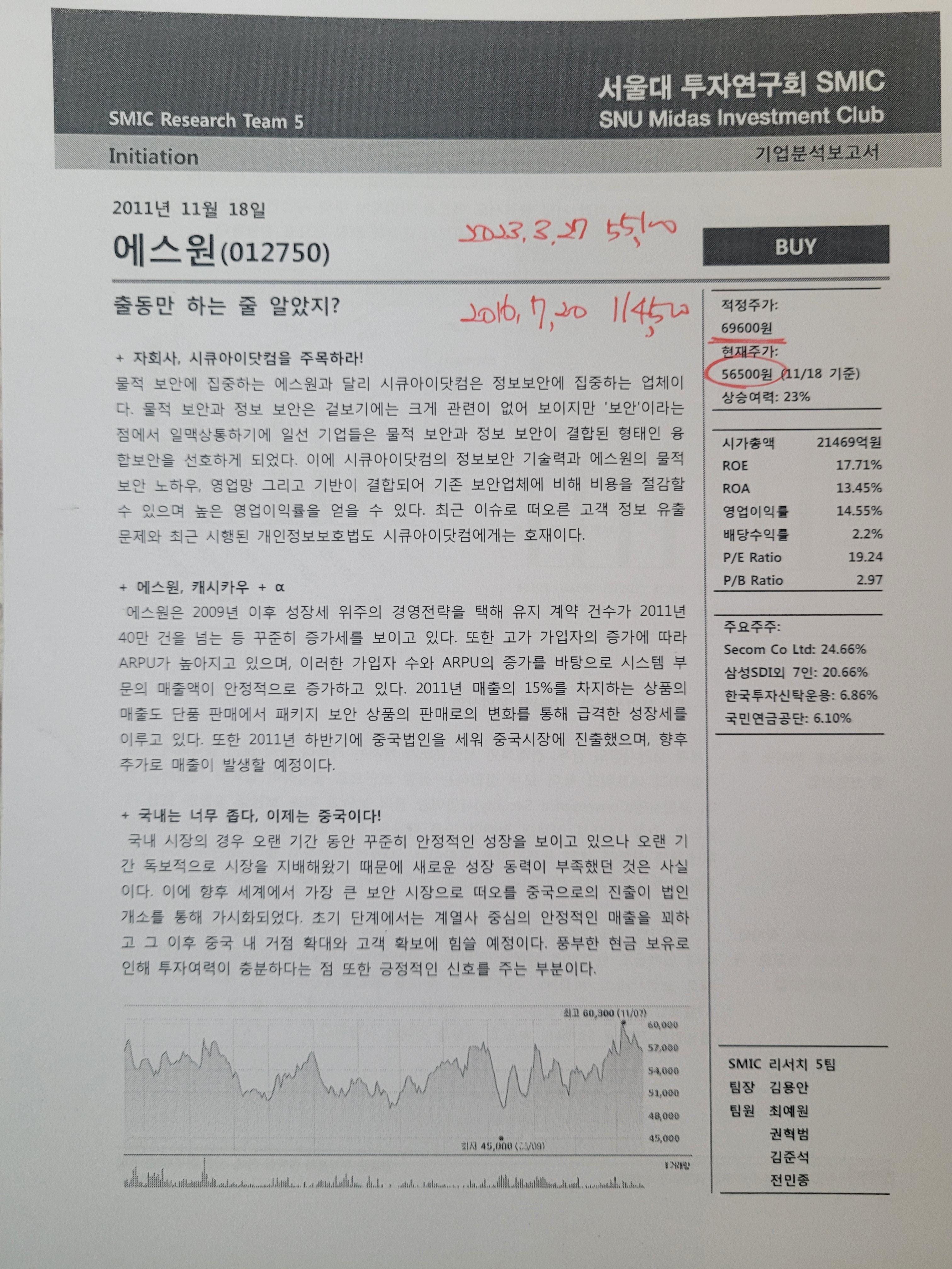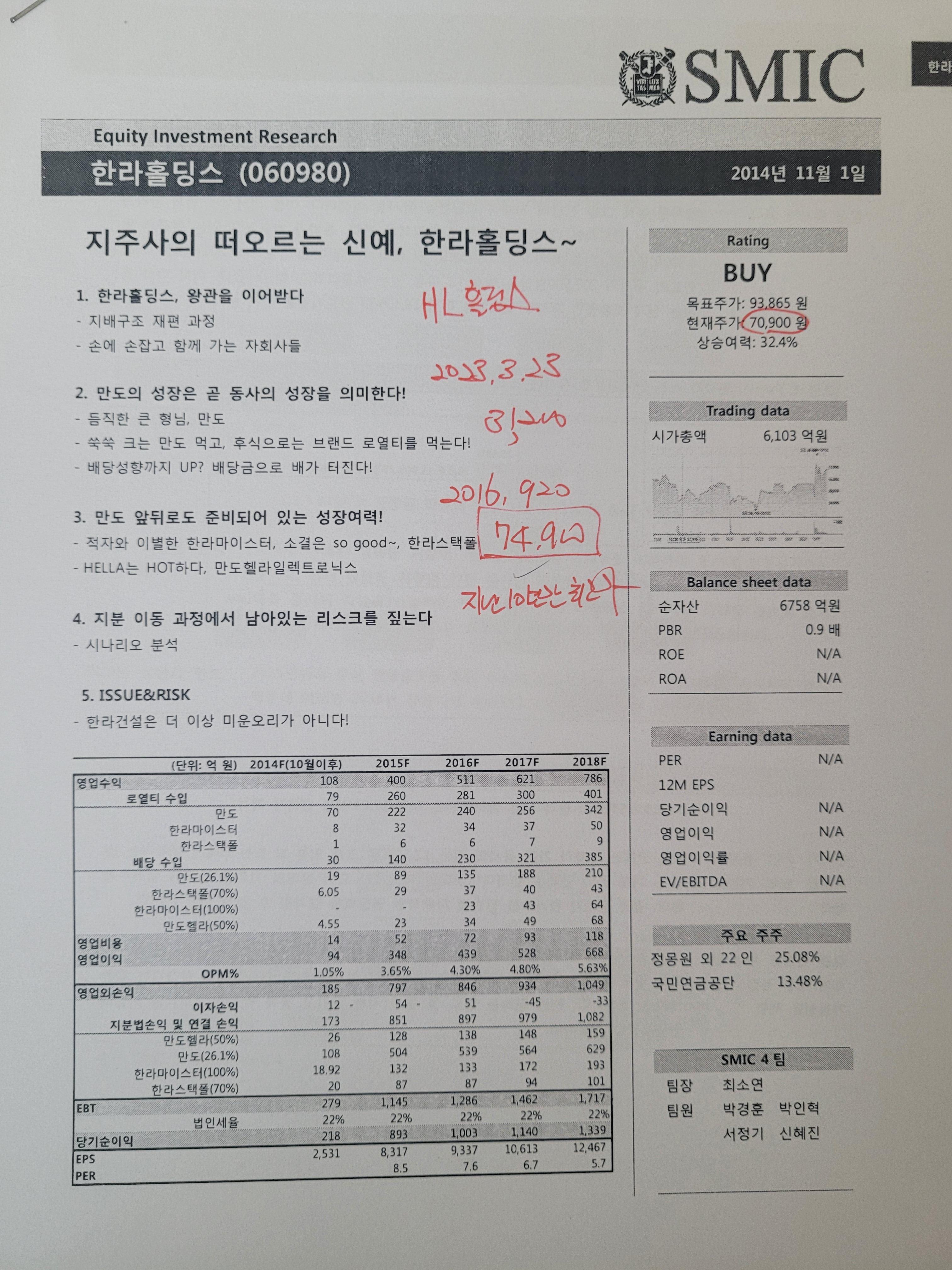 사진 속의 리포트에 당시의 가격과 리포트 작성기관 현재가등이 다 나와 있습니다.