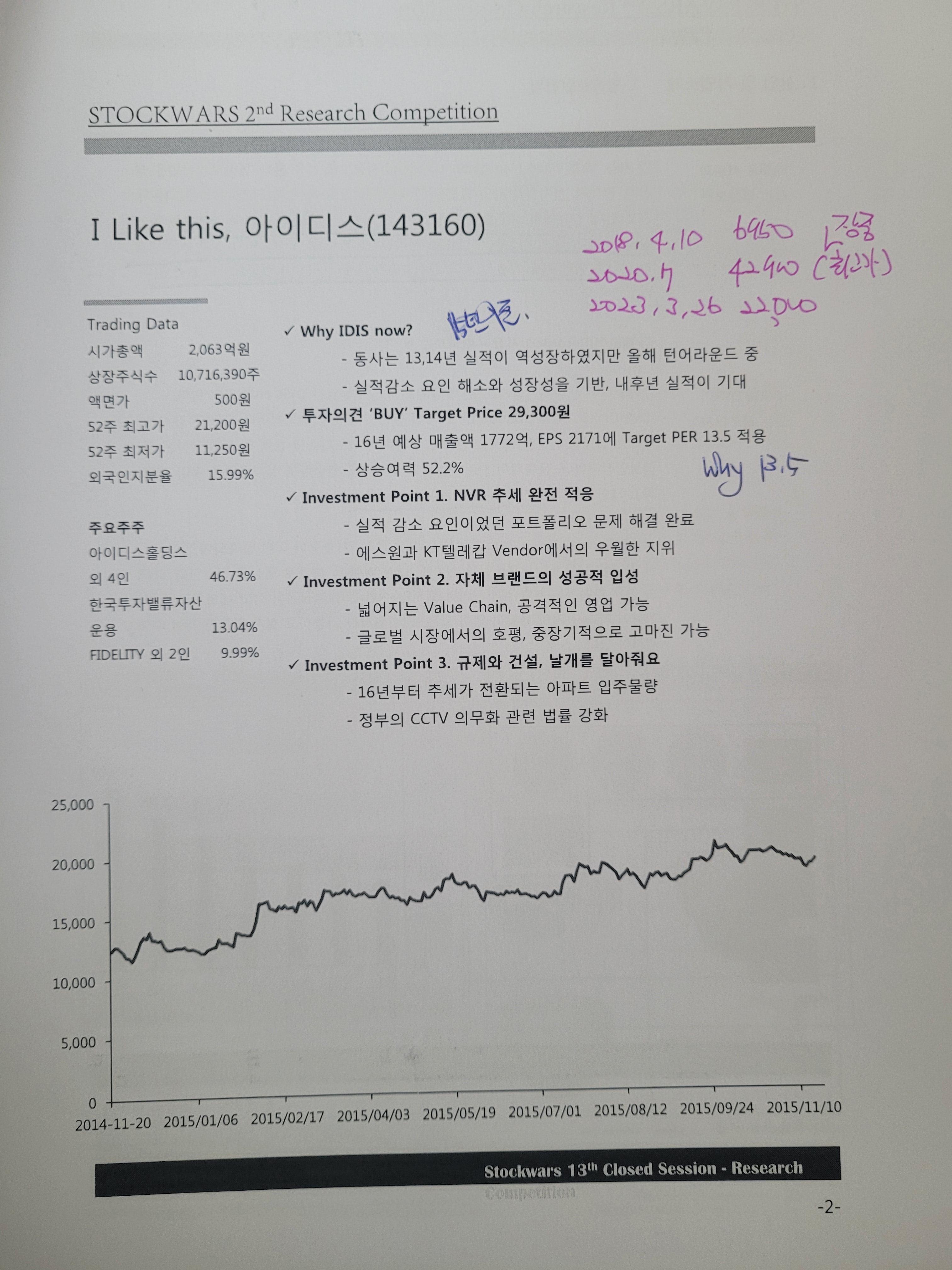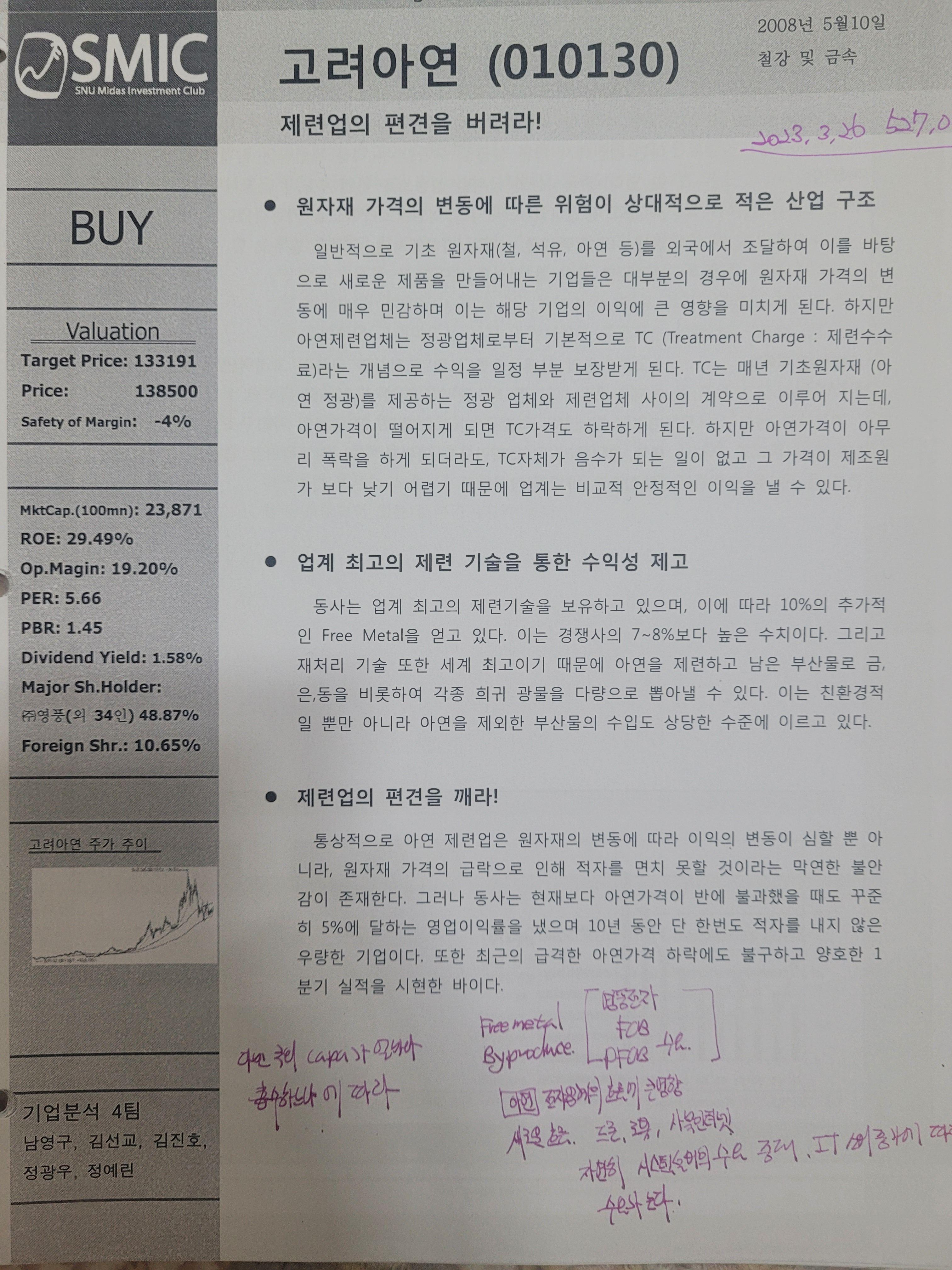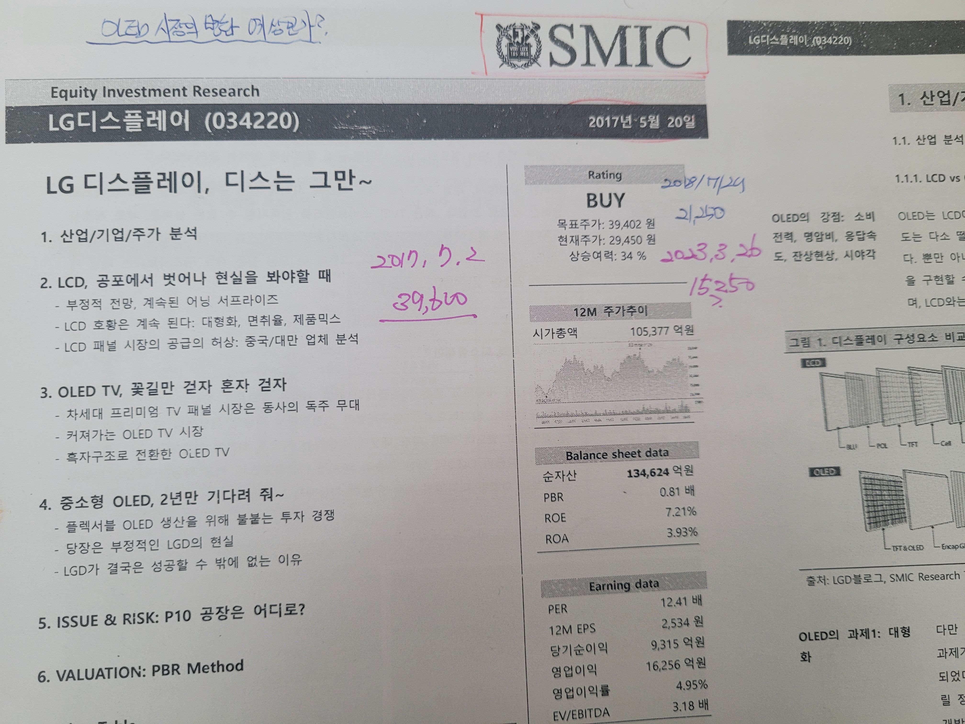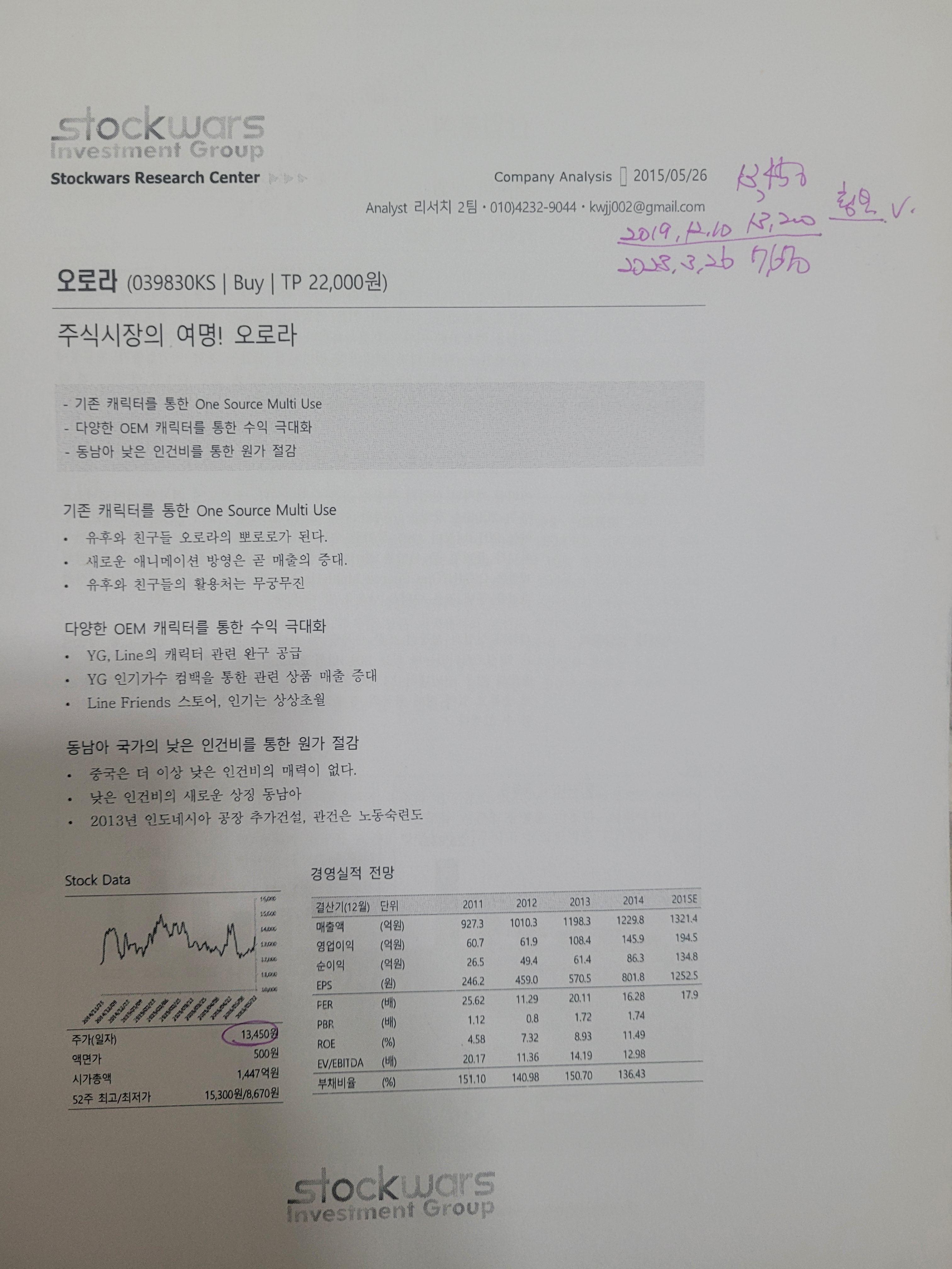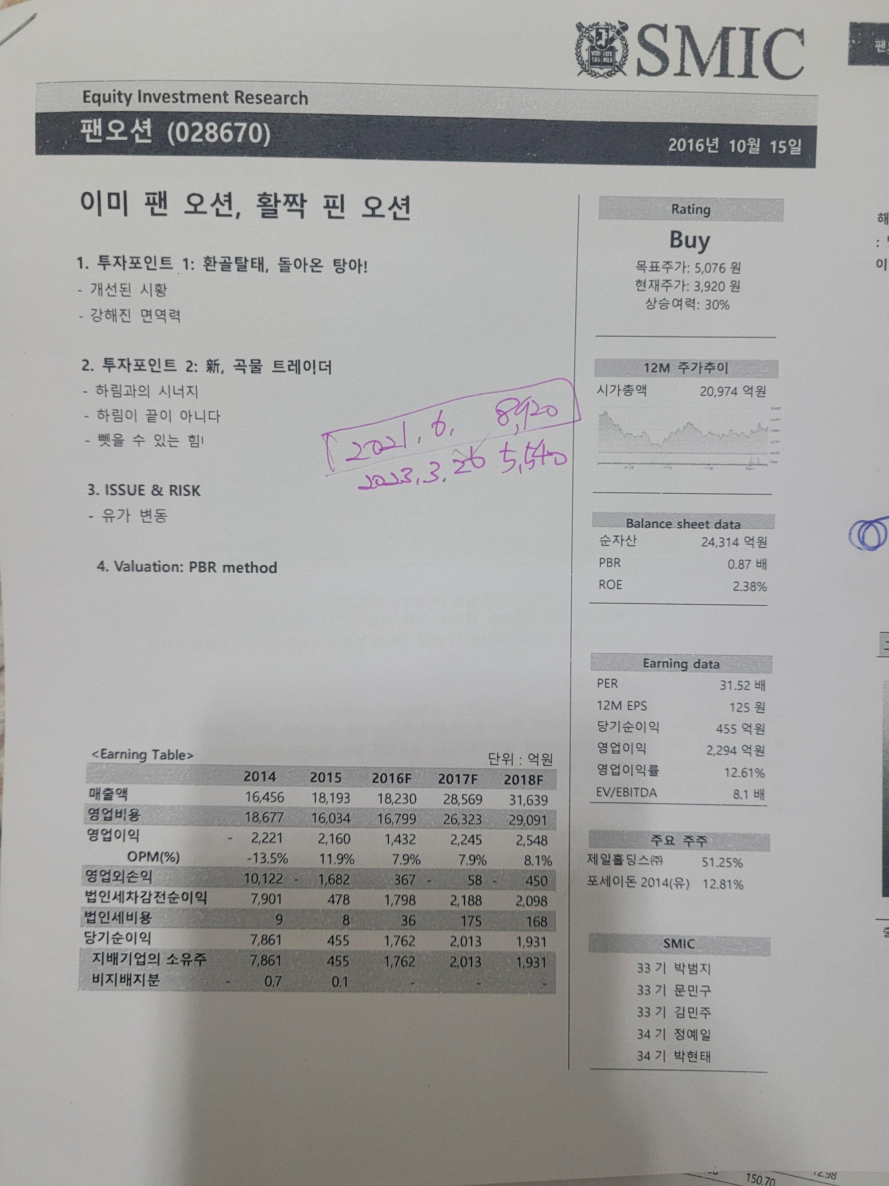 사진 속의 리포트에 당시의 가격과 리포트 작성기관 현재가등이 다 나와 있습니다.
