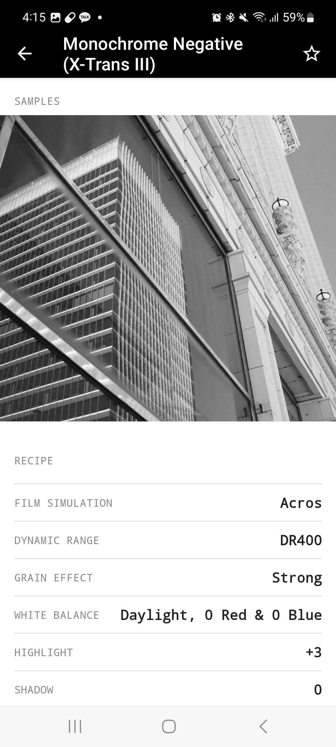 그 중에서 흑백사진 Monochrome Negative으로 후지 필름레시피를 만들어봤는데요.